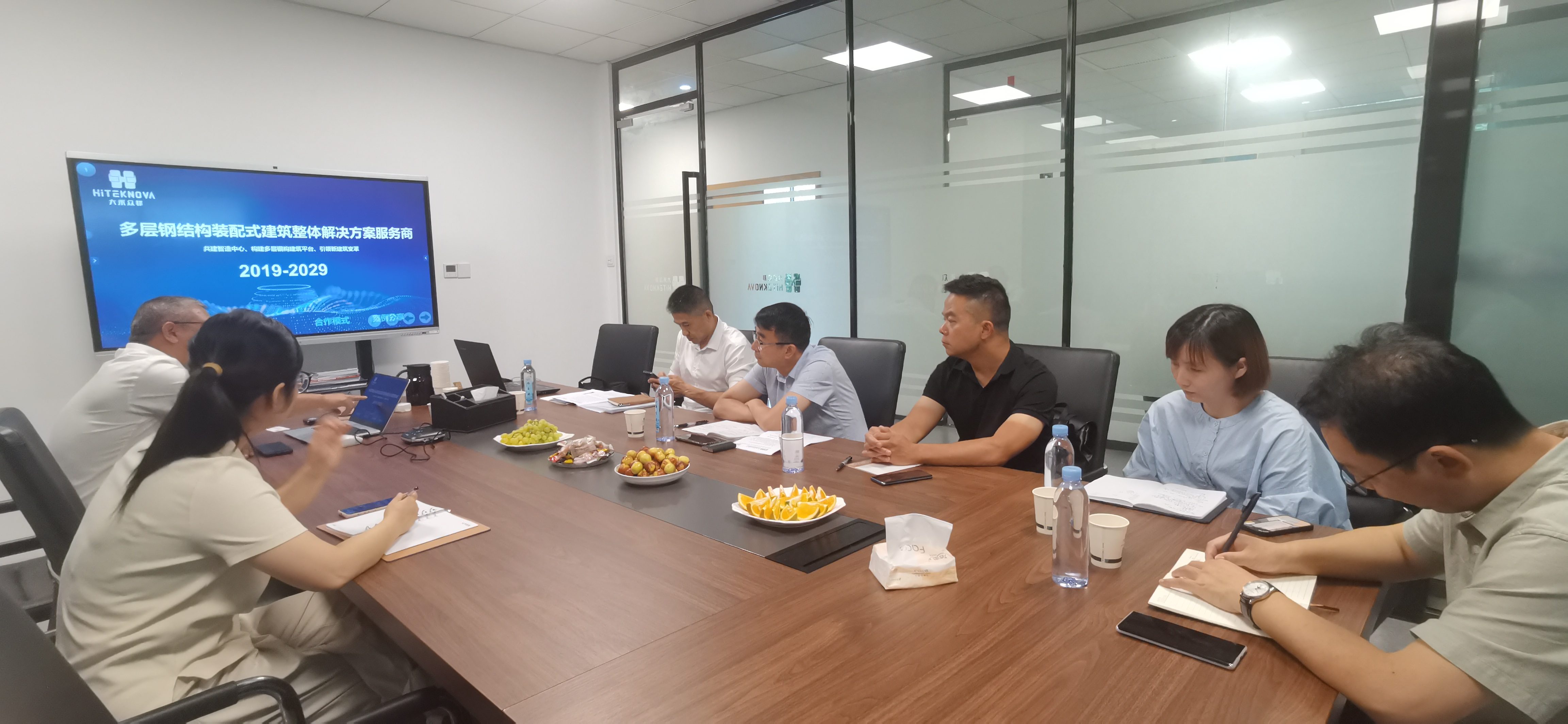 在會議上,大禾建科總經(jīng)理陳昕先生向各位領(lǐng)導(dǎo)介紹到“從2019年開始,大禾眾邦致力于成為多層裝配式建筑建造整體解決方案服務(wù)商,以“共建、共享、共生”的投資理念,引領(lǐng)多層鋼結(jié)構(gòu)新建筑的變革,計劃到2029年,在全國與當(dāng)?shù)氐暮献骰锇楹腺Y共建鋼結(jié)構(gòu)建筑智能制造中心,形成全國最具競爭力的多層裝配式鋼結(jié)構(gòu)建筑供應(yīng)鏈網(wǎng)絡(luò),推行鋼結(jié)構(gòu)裝配式建筑快速發(fā)展?!?/p>