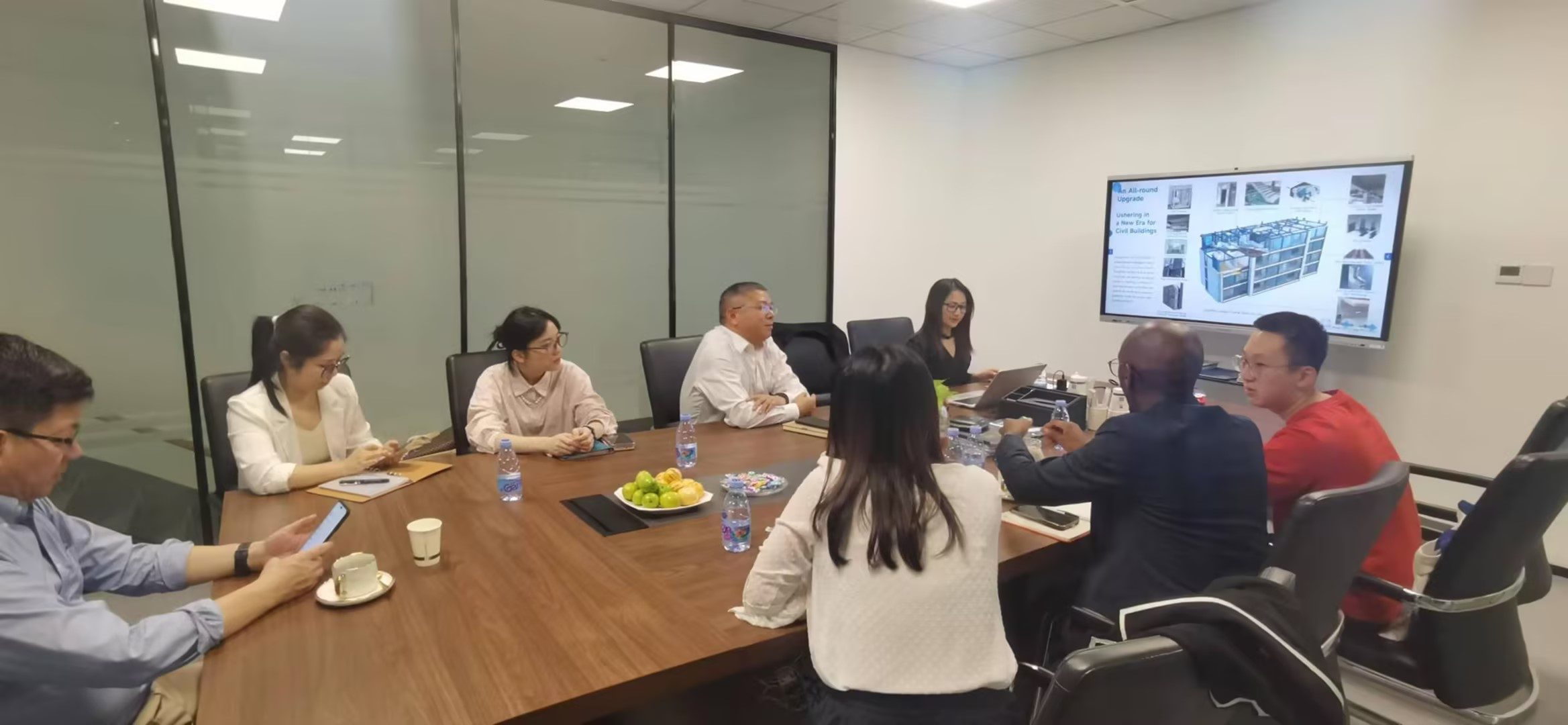 會議上,陳昕總經(jīng)理向?qū)Ψ浇榻B到;“大禾眾邦(廈門)智能科技股份有限公司新三板掛牌企業(yè),多年來致力于建筑智能化、模塊化研究,建筑智能生產(chǎn)與建造產(chǎn)品的研發(fā)與推廣,在柔性金屬成型、智能制造、工業(yè)互聯(lián)網(wǎng)方面擁有多項專利技術(shù),在各地的鄉(xiāng)村住宅、民宿、商用建筑中大量使用。大禾作為鋼構(gòu)行業(yè)高新技術(shù)集團,在建筑技術(shù)、設計軟件、智能裝備、管理系統(tǒng)四大領(lǐng)域的研發(fā)有著顯著的成果,自創(chuàng)的全流程的智能制造方式服務于1-6層及高層的多種鋼構(gòu)建筑類型,為建筑業(yè)轉(zhuǎn)變?yōu)樽詣踊O計、智能制造、智能建造、可循環(huán)利用而不斷創(chuàng)新提供解決方案”